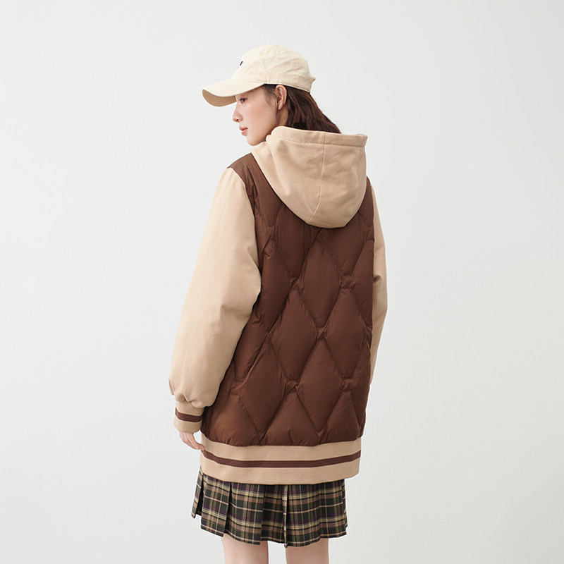 艾莱依拼接卫衣式羽绒服女时尚