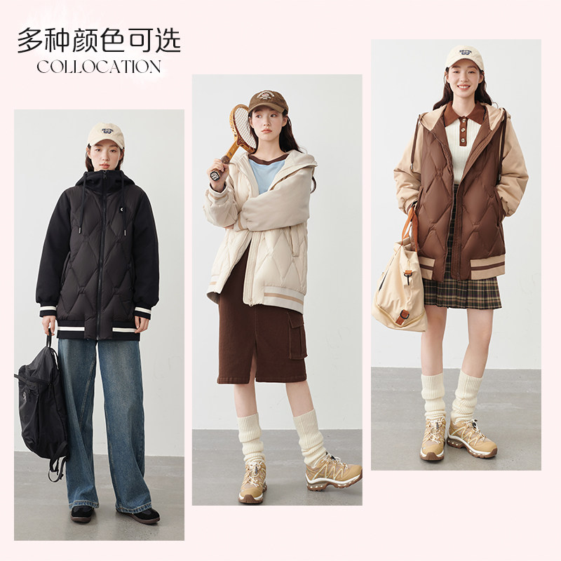 【迪丽热巴同款】Camel骆驼户外中性羽绒服连帽加厚保暖情侣款