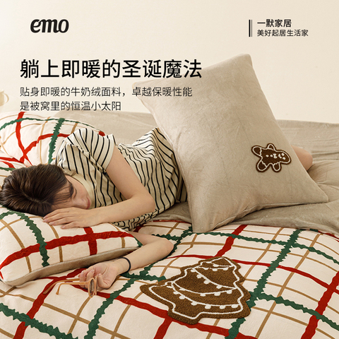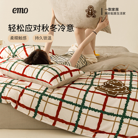 一默圣诞限定牛奶绒四件套姜饼人毛巾绣冬季床单被套加厚保暖礼物!