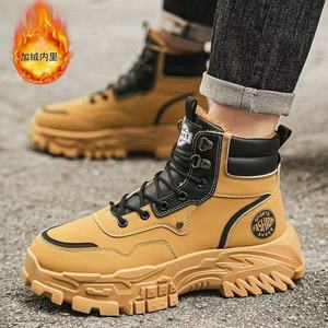 冬季马丁靴男加绒加厚保暖英伦风大黄靴时尚百搭增高厚底工装靴子