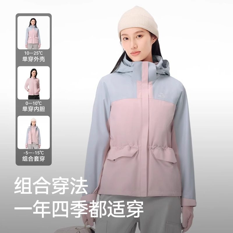 伯希和户外冲锋衣女款三合一摇粒绒内胆防风收腰款外套保暖登山服