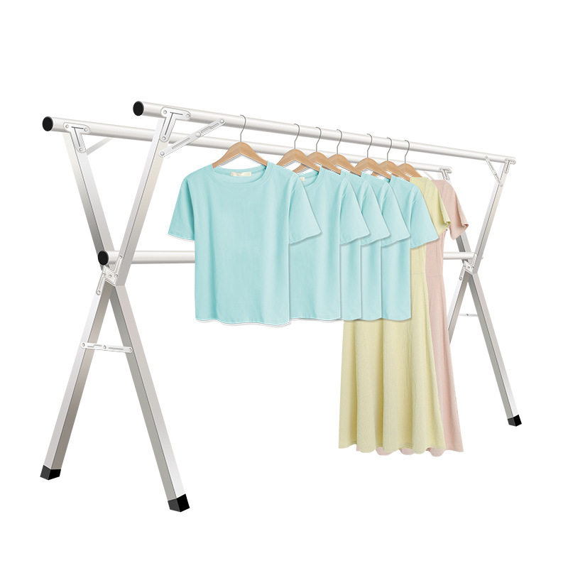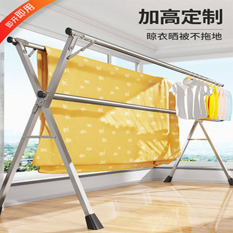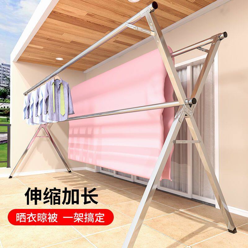 不锈钢晾衣架落地折叠室内外晒衣架双杆阳台挂衣架X型伸缩晾衣杆