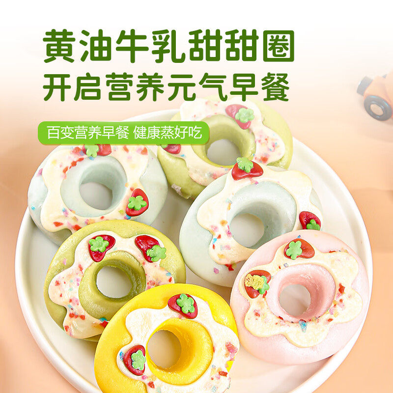 黄油牛乳甜甜圈,开启营养元气早餐,0反式脂肪酸,配料干净,营养健康,萌趣可爱,好吃又好看!