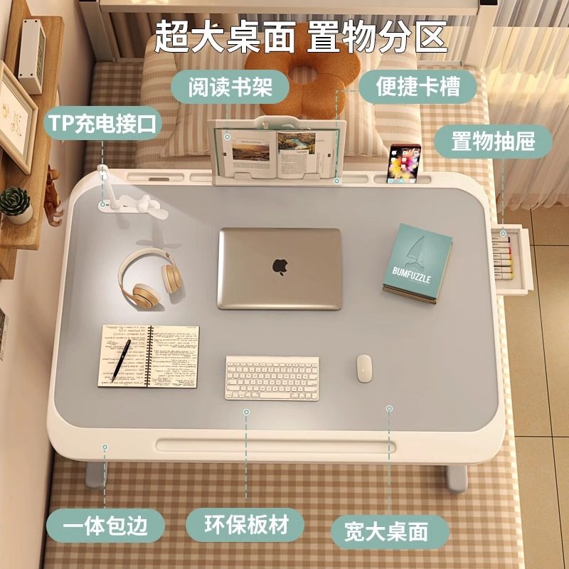 可折叠可升降床上小桌子宿舍学习书桌笔记本电脑桌懒人桌飘窗桌板