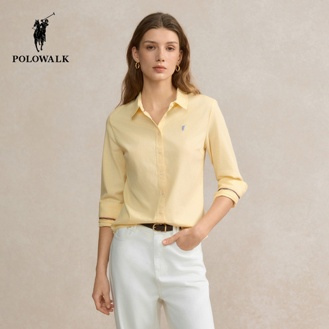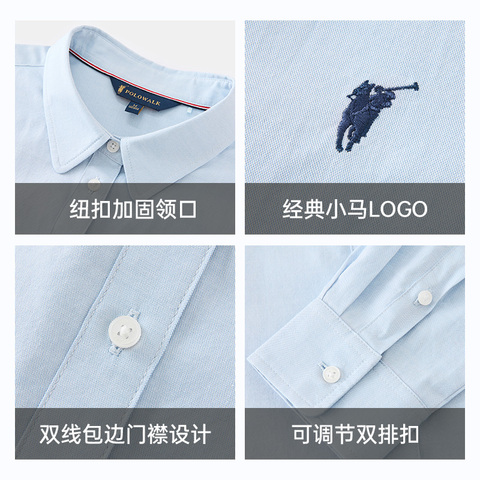 【100%棉】POLOWALK女士白色衬衫秋冬新款修身长袖牛津纺正装衬衣