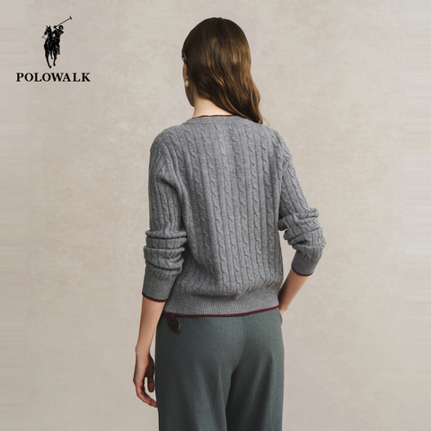 【100%绵羊毛】POLOWALK针织衫女士秋冬绞花长袖毛衣百搭通勤外套