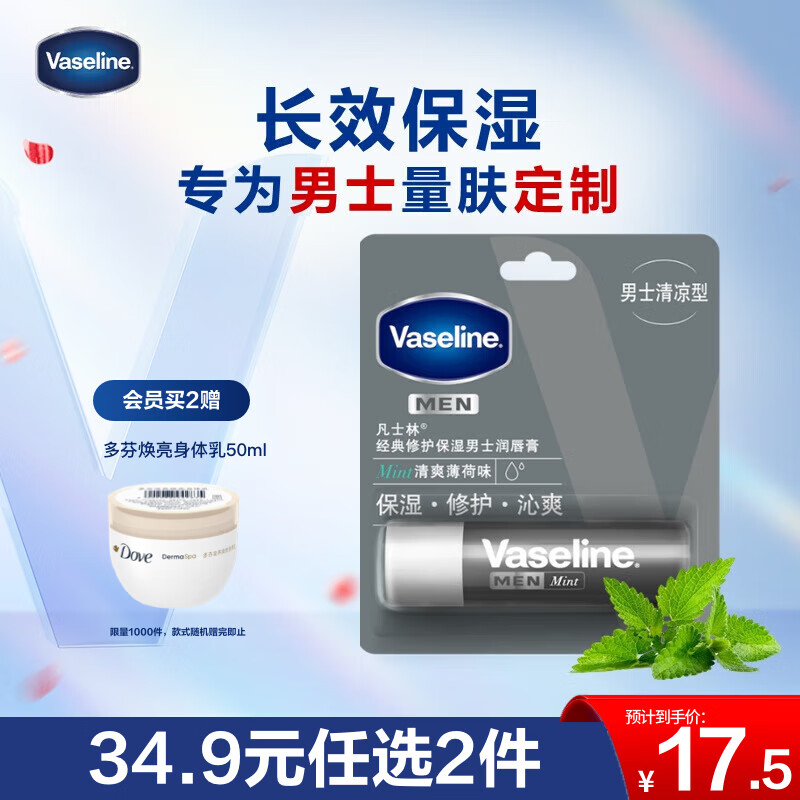 凡士林修护润唇膏3.5g男士薄荷深层补水保湿滋养润唇 有效期27年10月