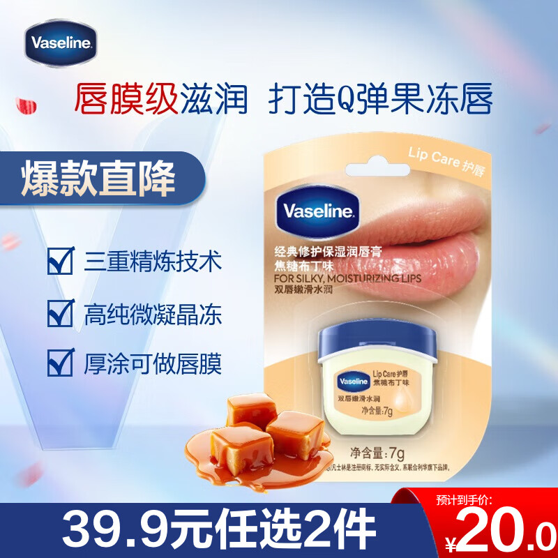 凡士林润唇膏7g焦糖布丁男女润唇晶冻唇膜保湿修护礼物 有效期27年10月