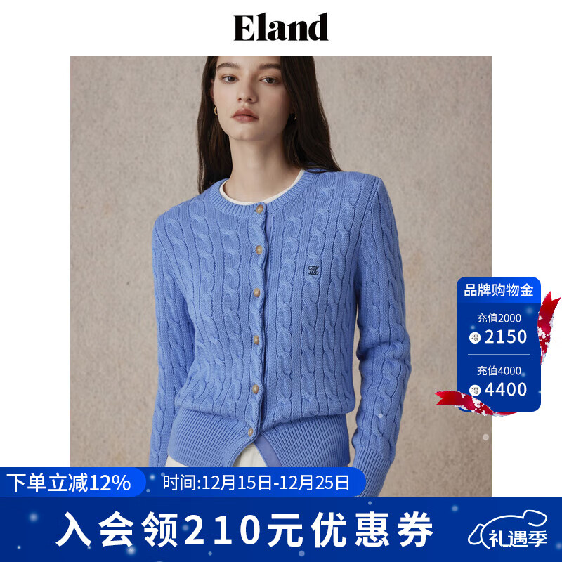 ELAND【匹马棉】衣恋毛针织衫女秋日棉花糖变形绞花毛衣25秋新款 海岸蓝(50)Blue L /170