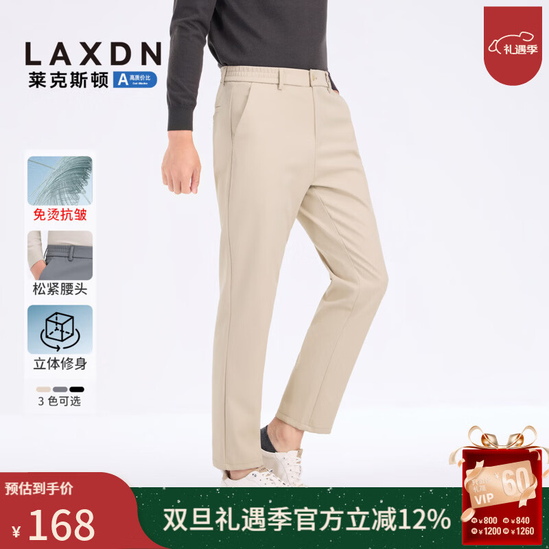 莱克斯顿休闲裤男秋冬纯色免烫抗皱松紧腰修身直筒商务休闲裤子男 浅卡其 L