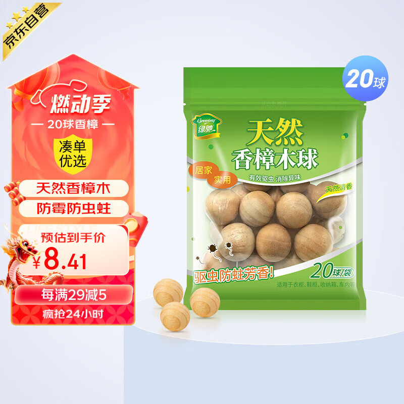 绿驰20球香樟木鞋衣柜子驱蟑螂防虫蛀去霉潮湿剂卫生条块除臭味樟脑丸