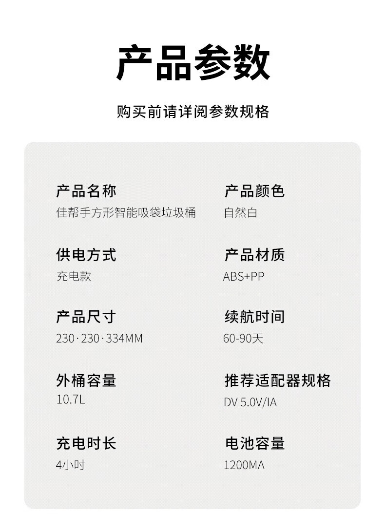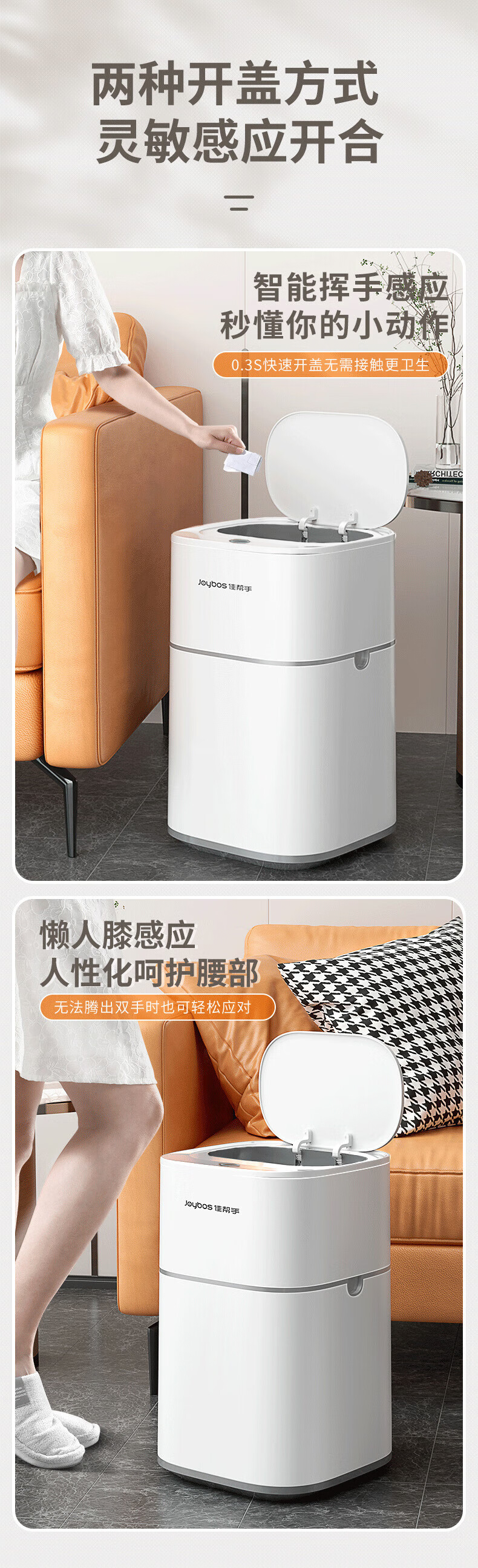 佳帮手吸附套袋智能垃圾桶感应式电动带盖大号客厅卫生间办公室家用 【包邮】【感应2只装】充电款 10.7L