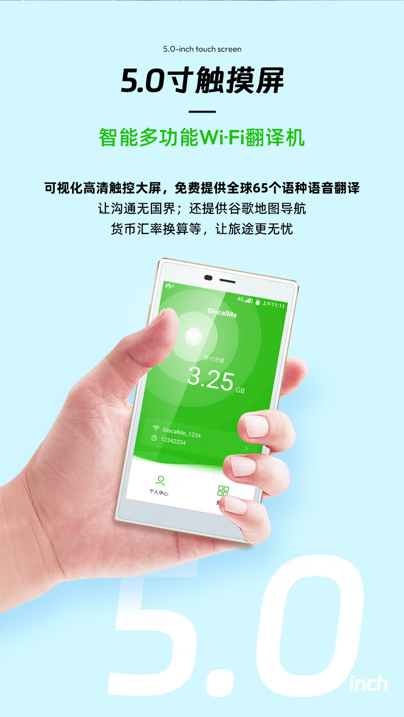 GlocalMe全球旅行随身WIFI移动随身多功能翻译机零漫游免插卡无线出国旅游出差出国留学专用 黑色 国内1500G+国外覆盖单国100G