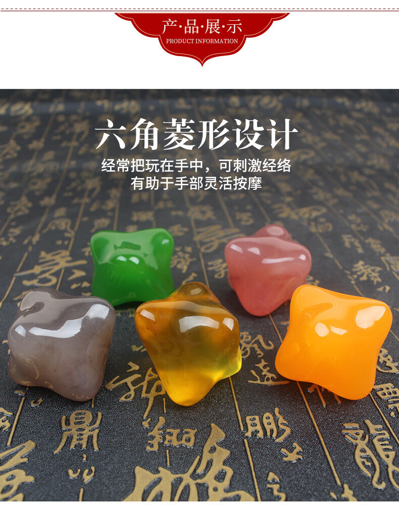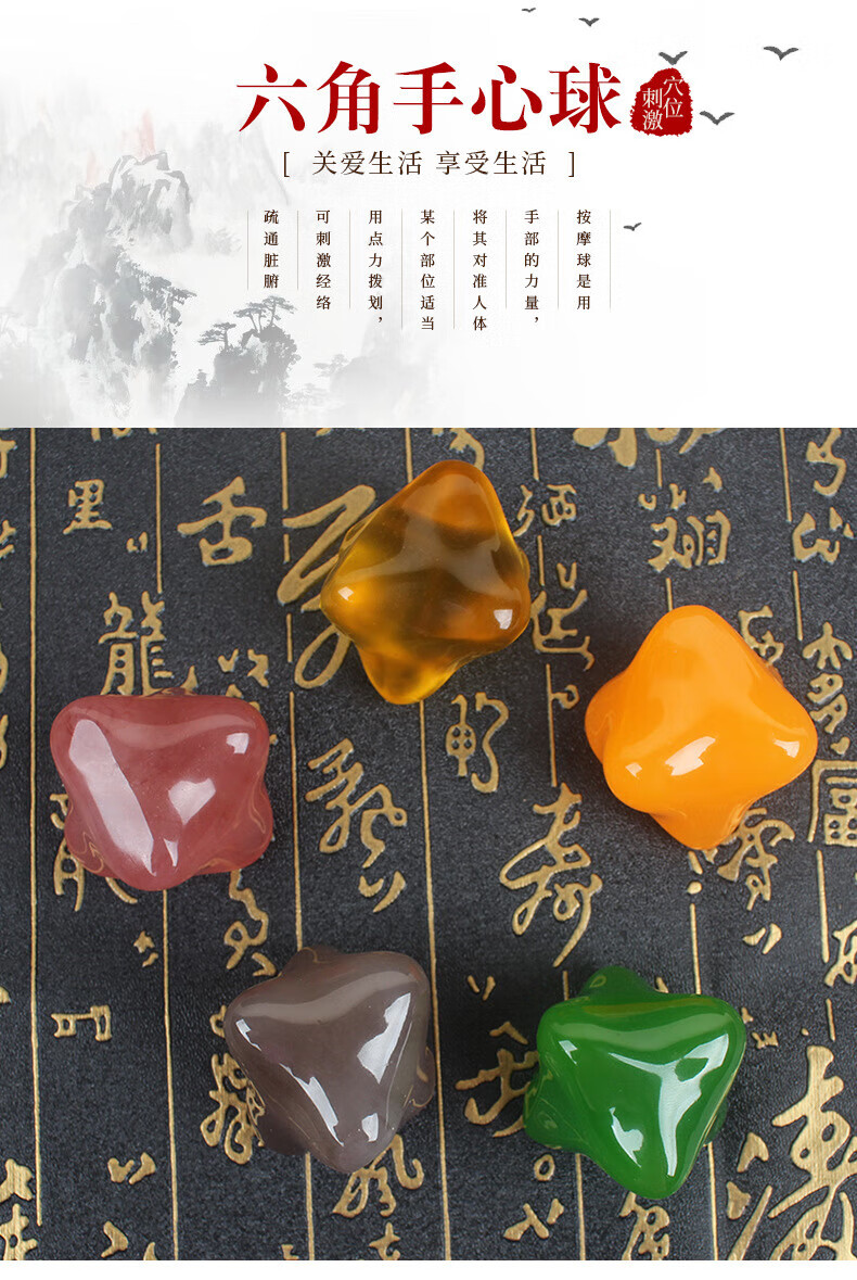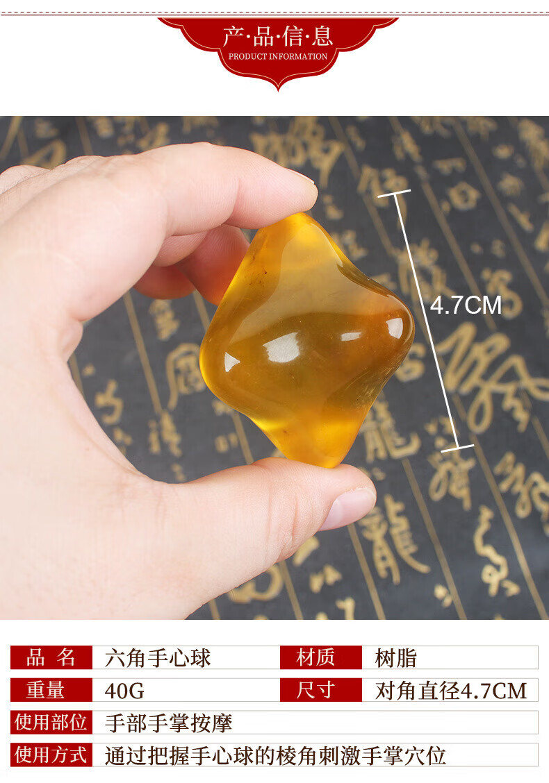 树脂六角按摩球手心按摩锥手指力握力球肌肉球手部穴位按摩器 黄色款-1个 无规格