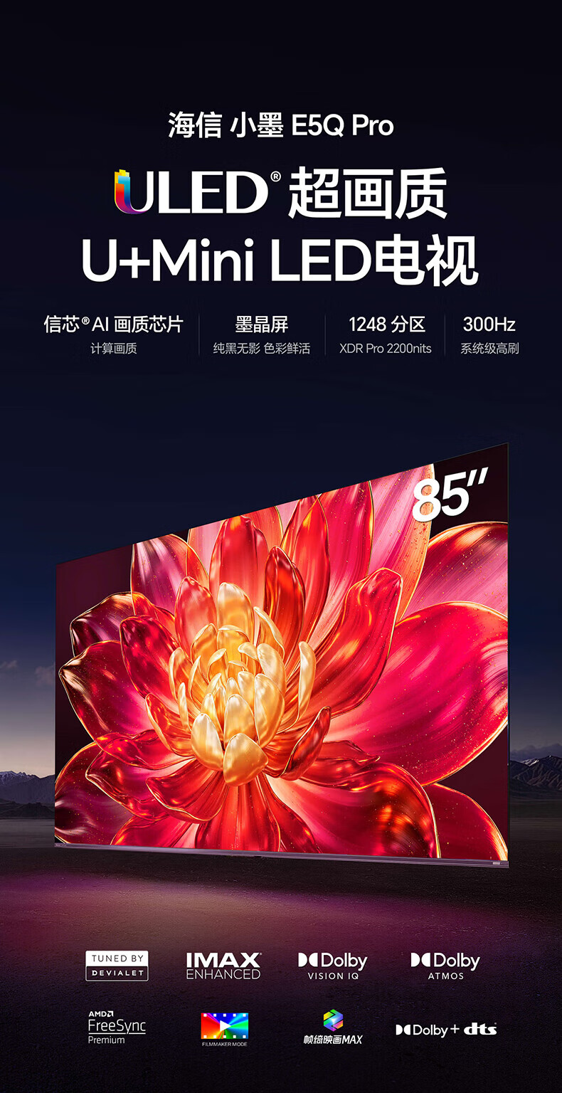 海信电视小墨E5Q Pro 85英寸超画质U+MiniLED 信芯芯片 墨晶屏300Hz高刷85E5Q-PRO E5NPRO 85英寸
