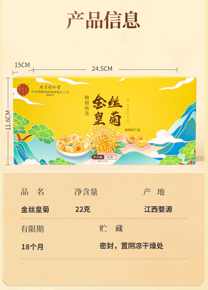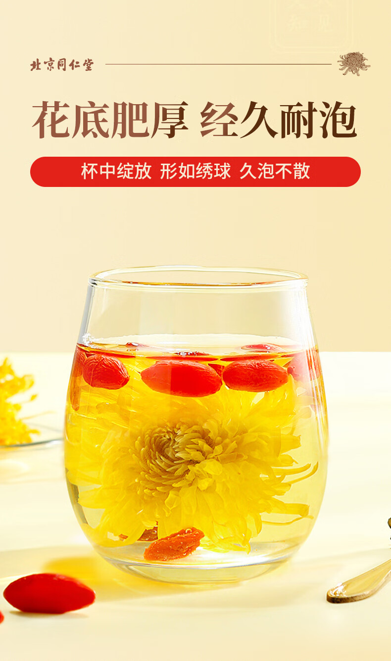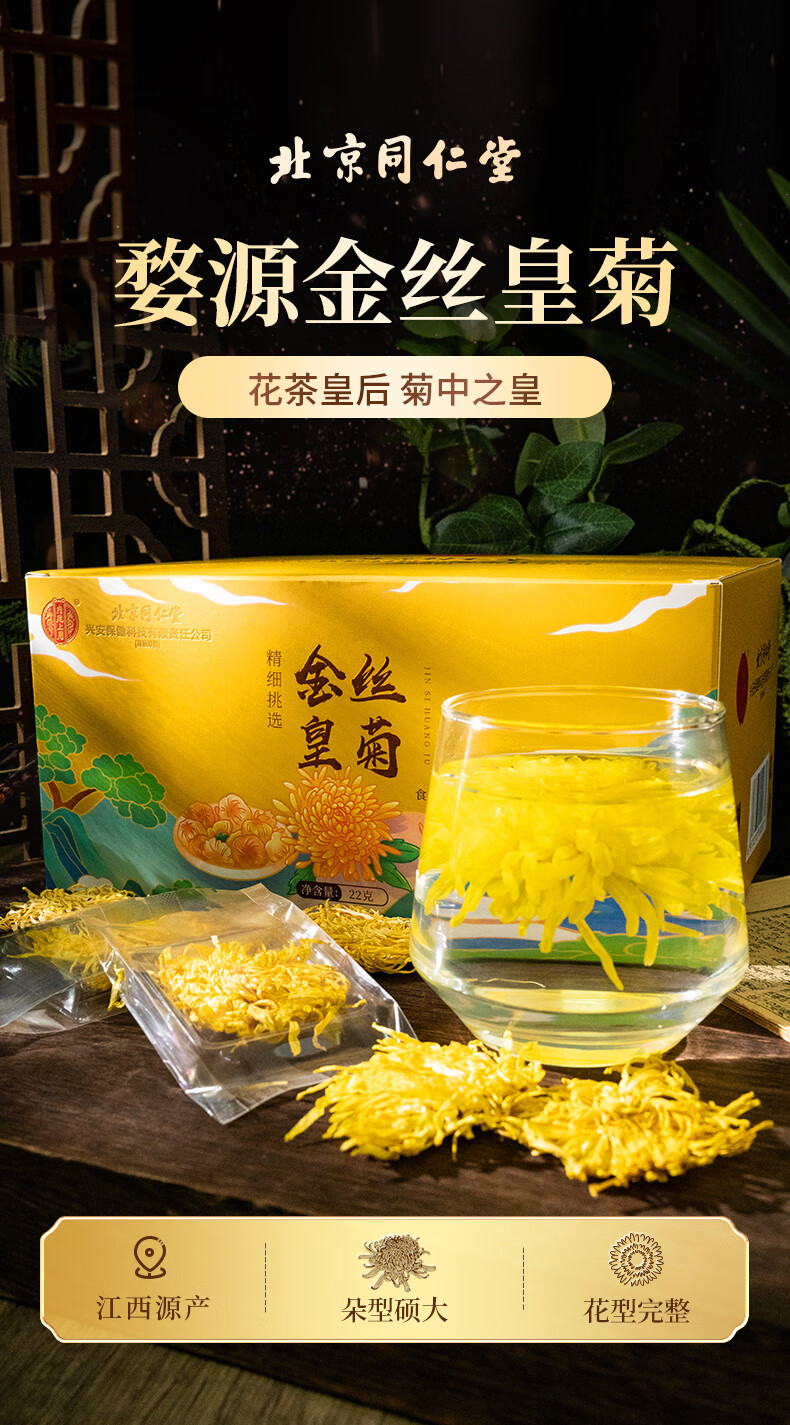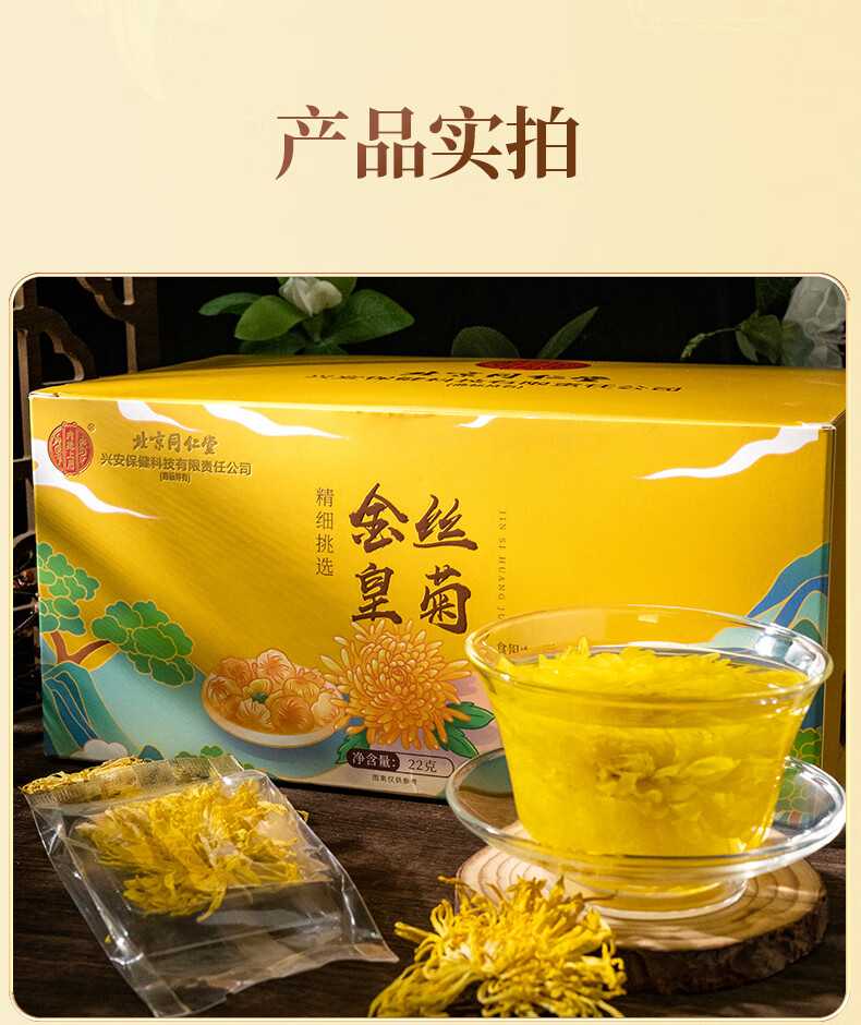 同仁堂(TRT)金丝皇菊特级一杯一朵菊花茶独立小包装40包/盒