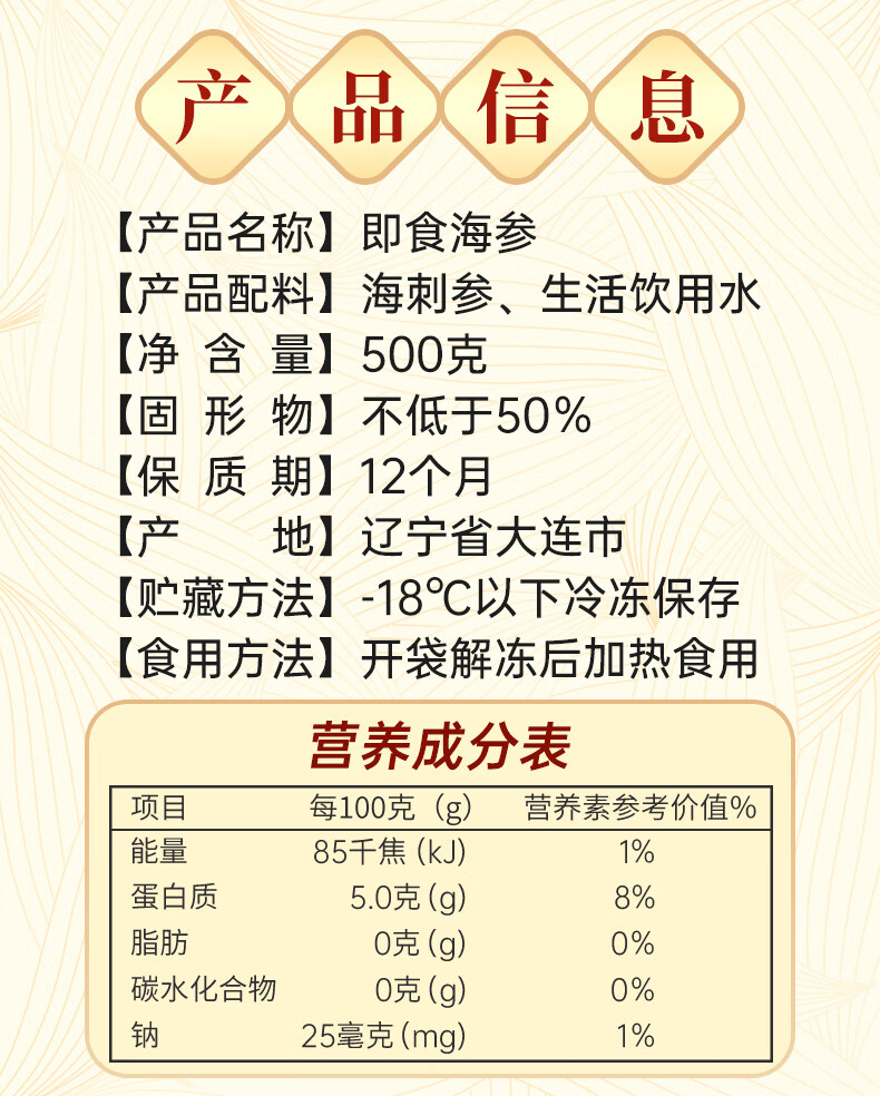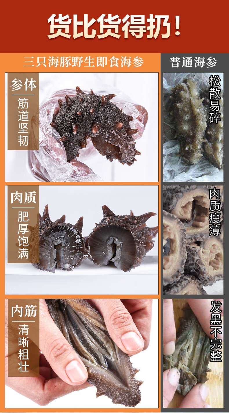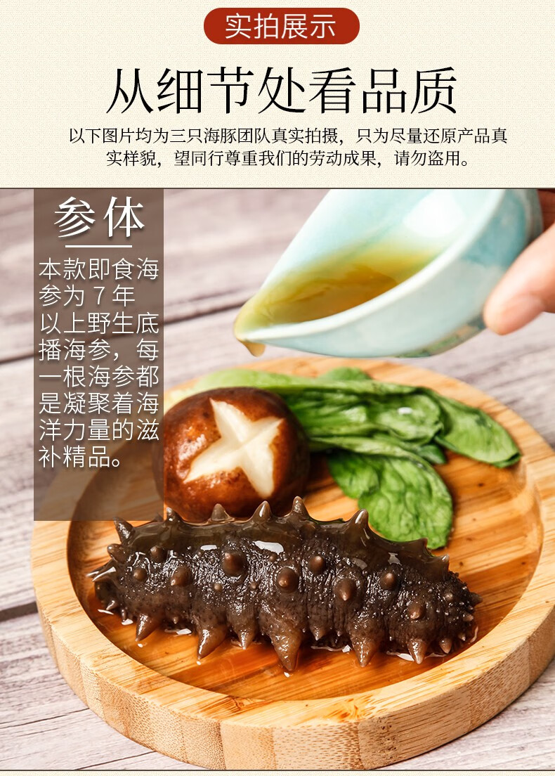 三只海豚 即食海参 大连海参单个装辽刺参 野生辽刺参开袋即食海参500g 专属优惠500g(20-30只)
