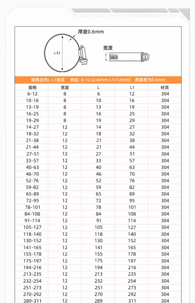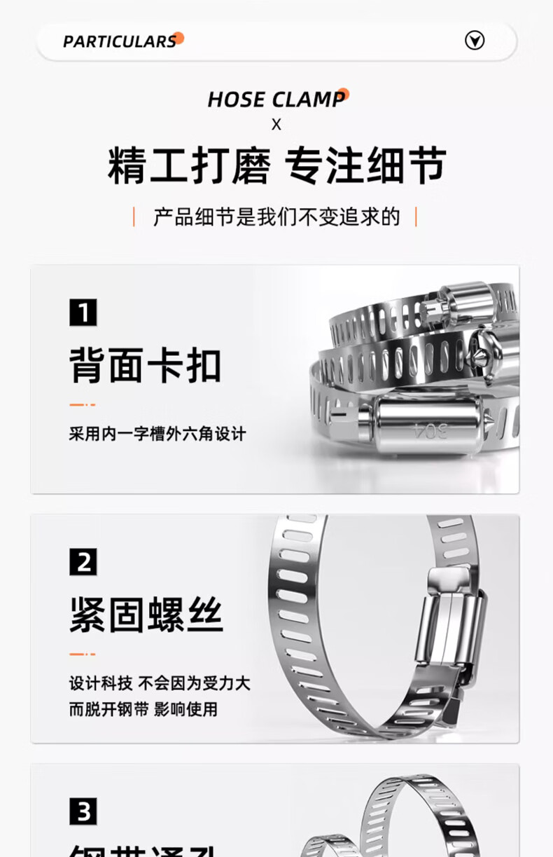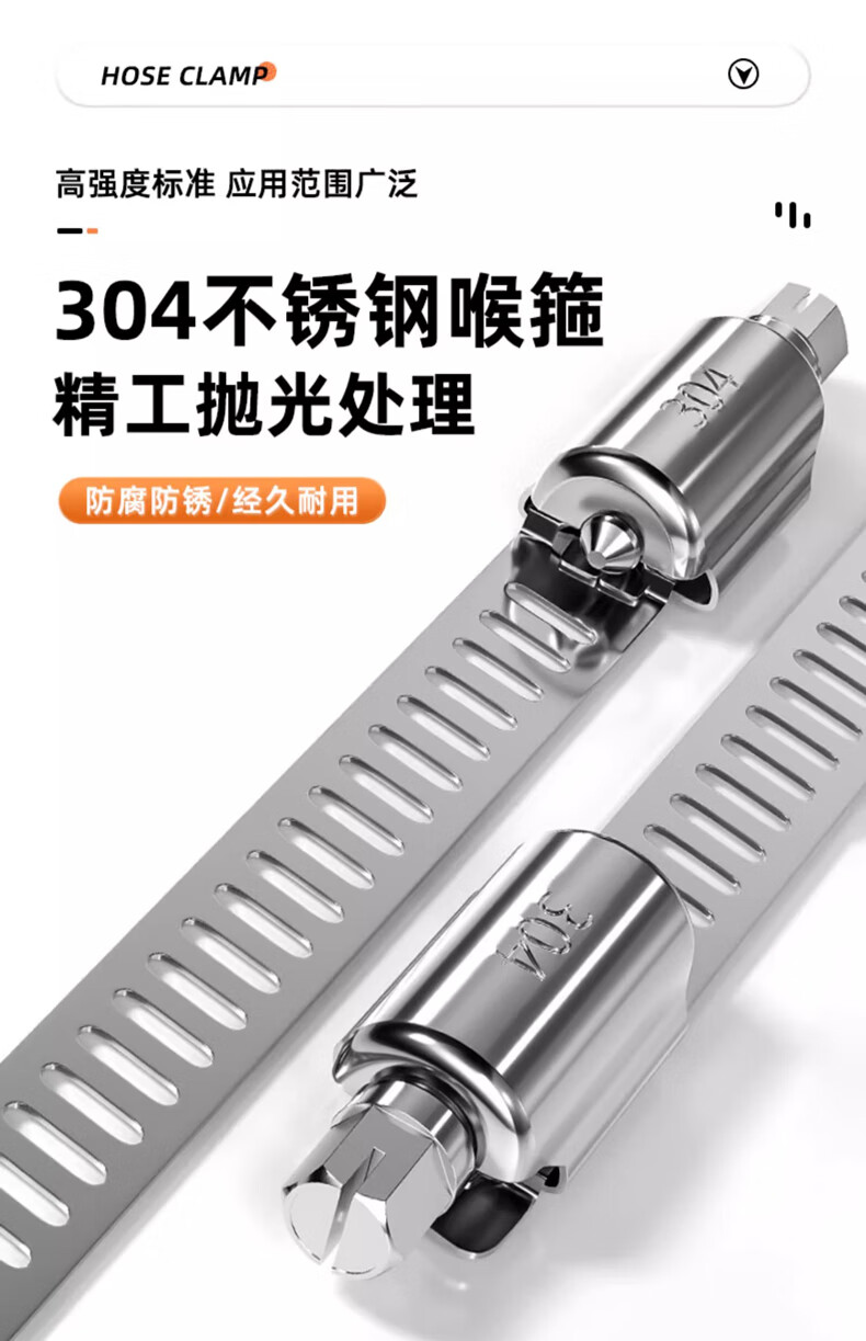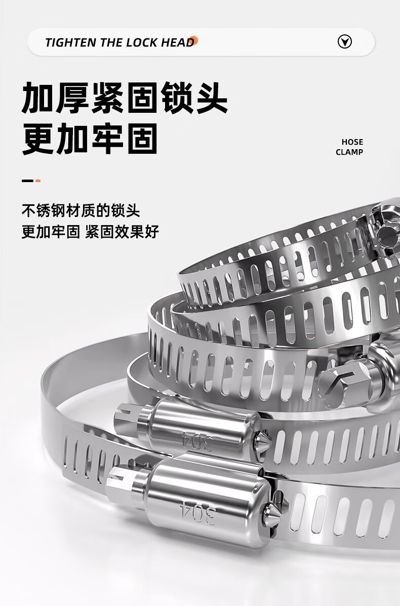 天卓五金喉箍201/304不锈钢喉箍美式管夹卡箍 抱箍 管卡水管活箍 (201)289-311mm(直径)-1个
