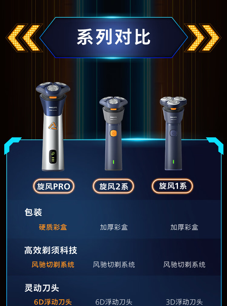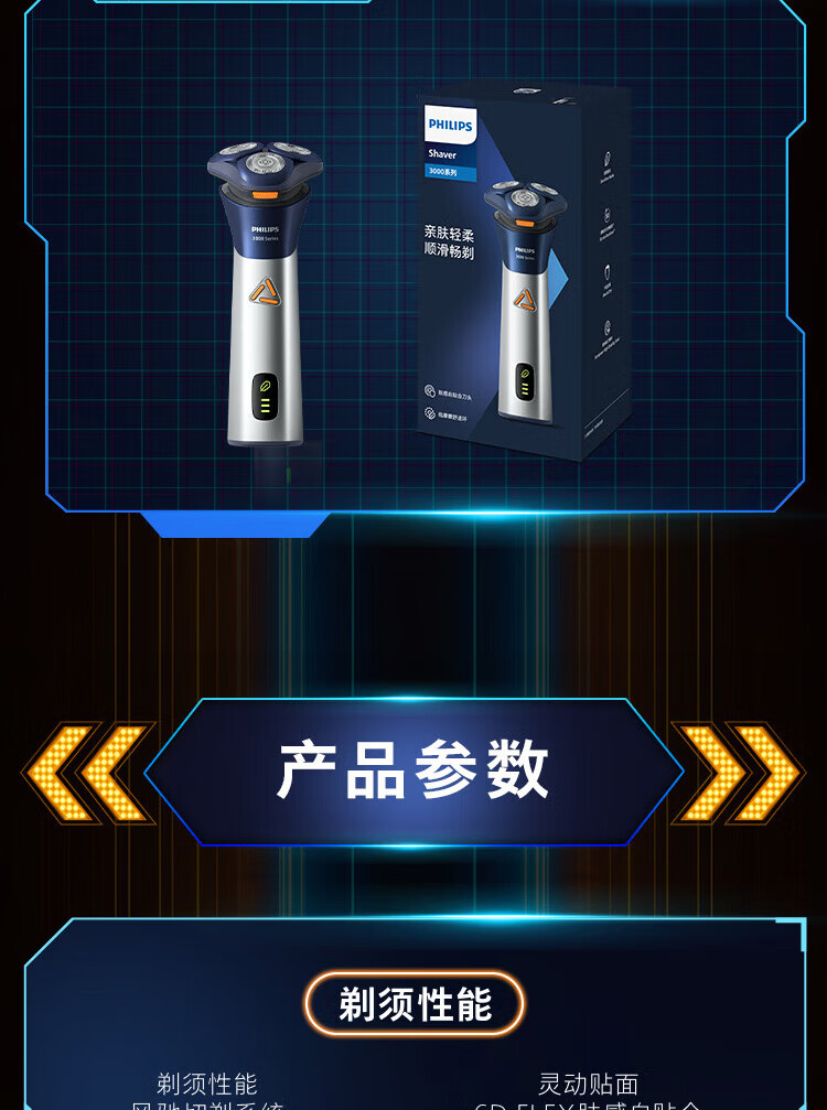 飞利浦(PHILIPS)电动剃须刀经典3系 干湿双剃刮胡刀 配弹出式鬓角修剪器 圣诞节礼物送男友送老公 父亲生日礼物
