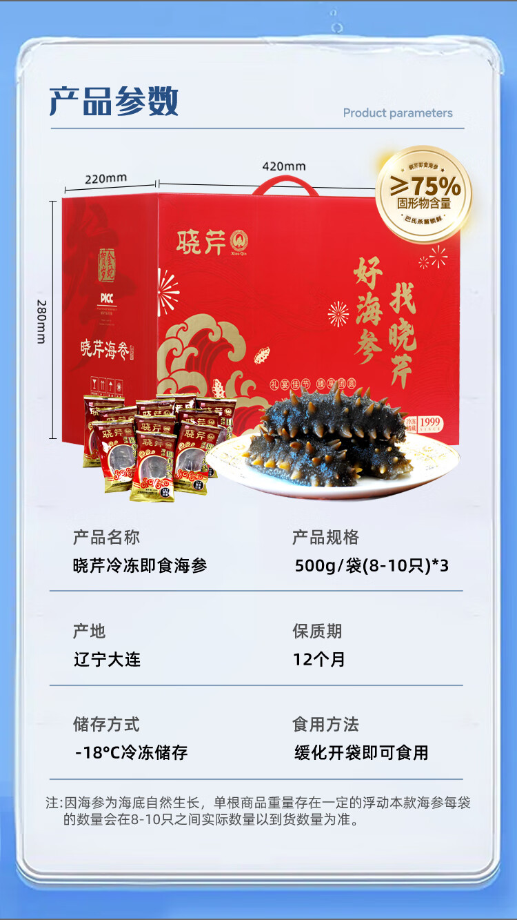 晓芹大连即食海参1500g24-30只辽刺参 海鲜水产 海参礼盒