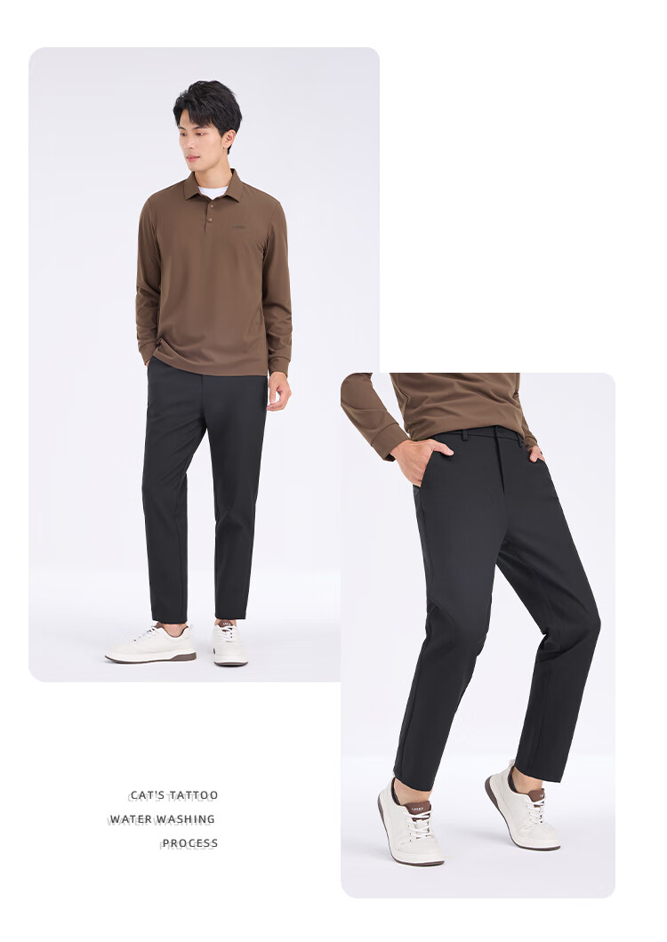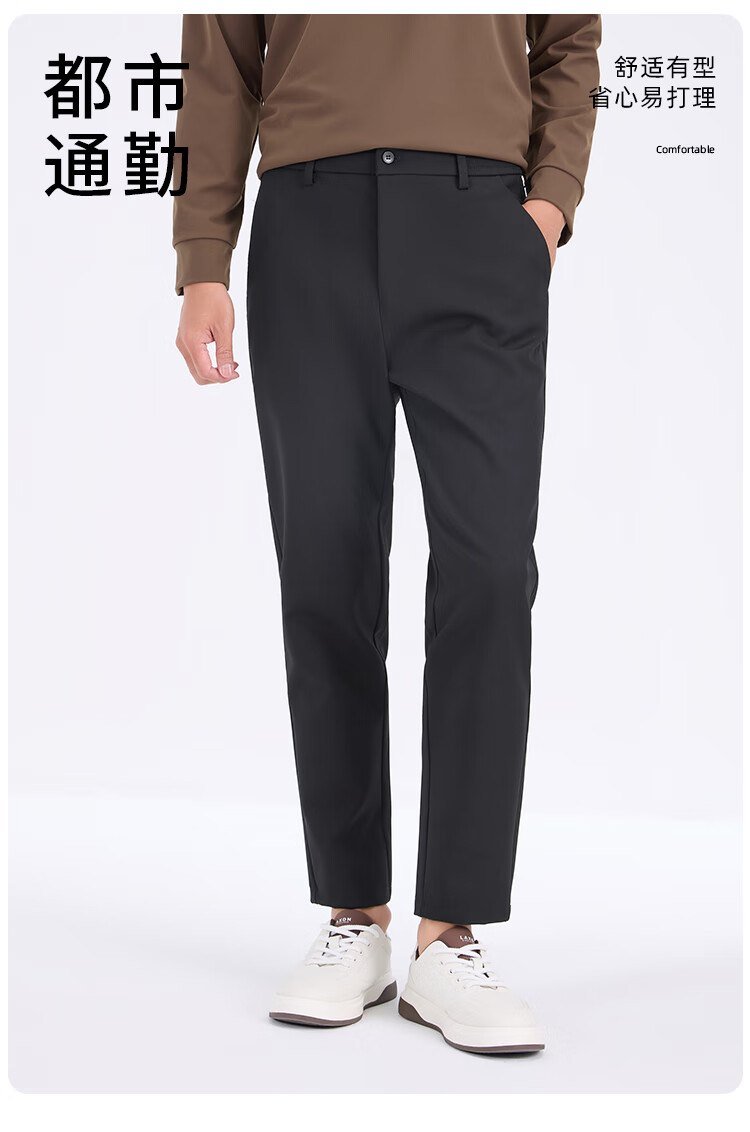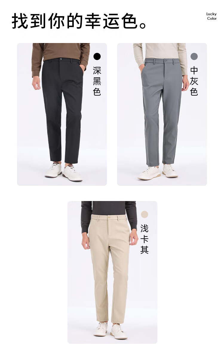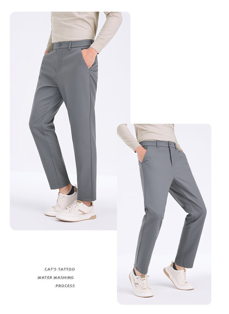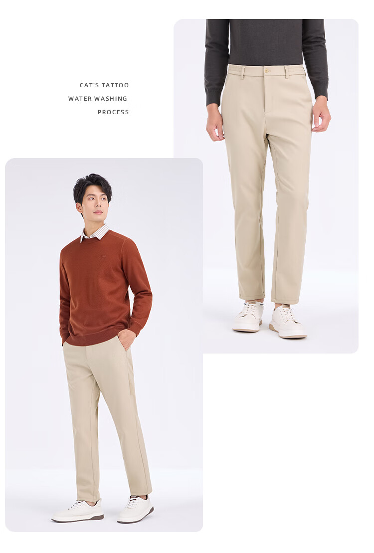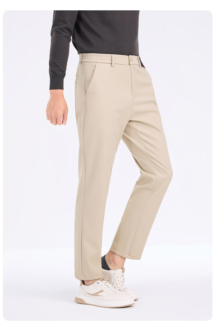 莱克斯顿休闲裤男秋冬纯色免烫抗皱松紧腰修身直筒商务休闲裤子男 浅卡其 L