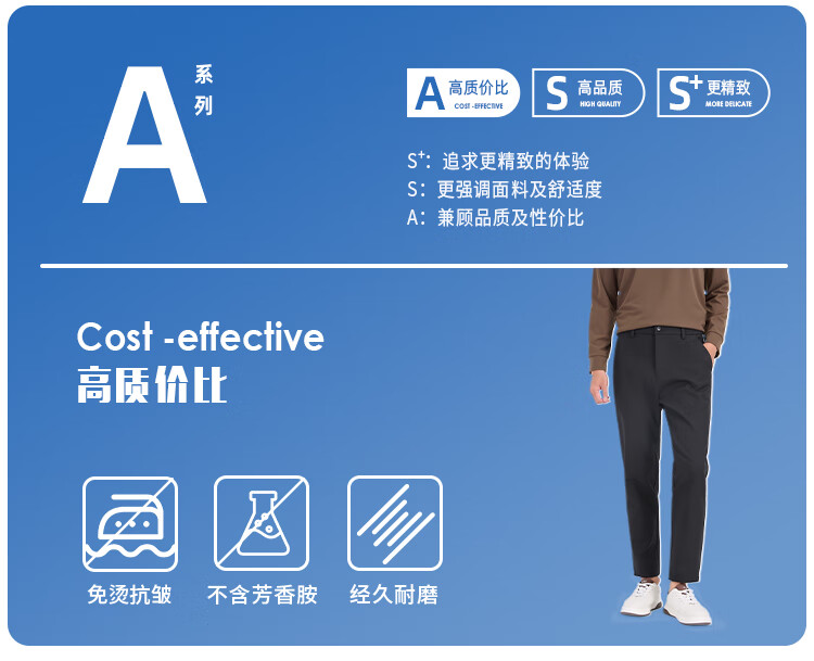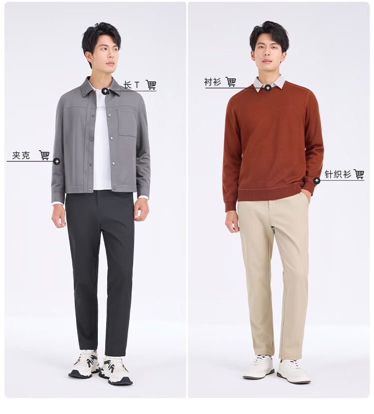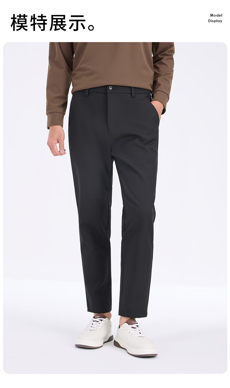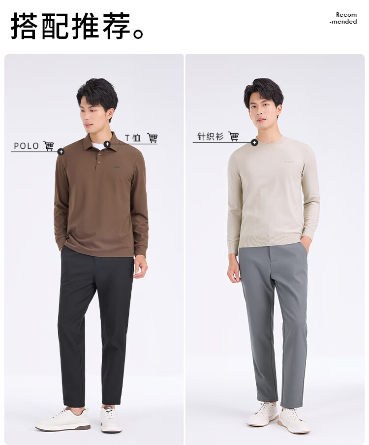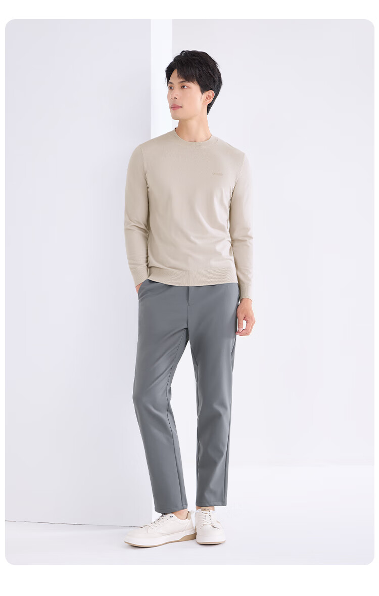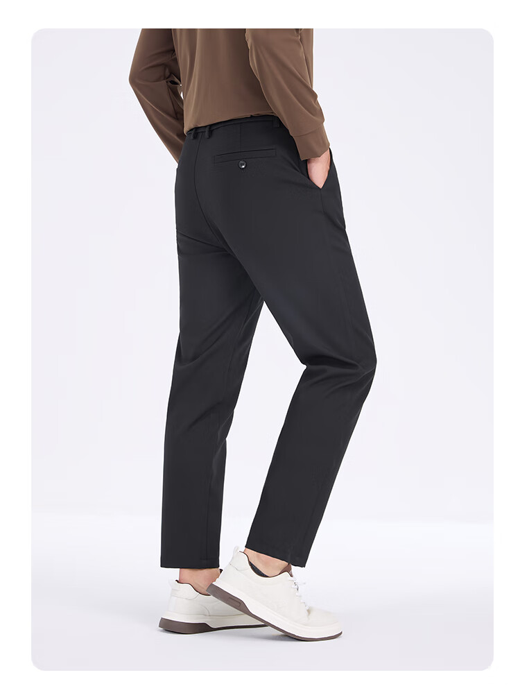 莱克斯顿休闲裤男秋冬纯色免烫抗皱松紧腰修身直筒商务休闲裤子男 浅卡其 L