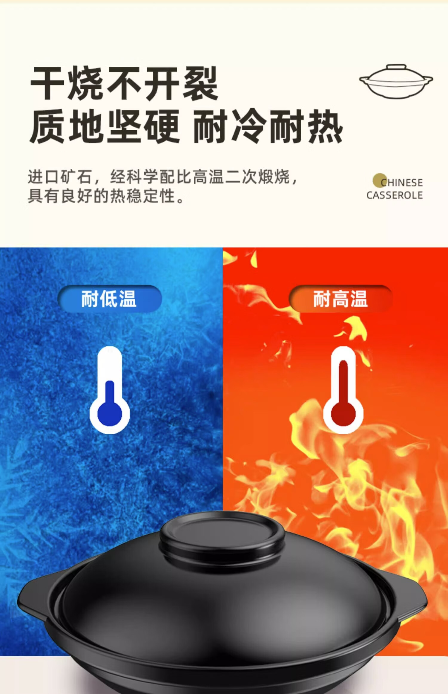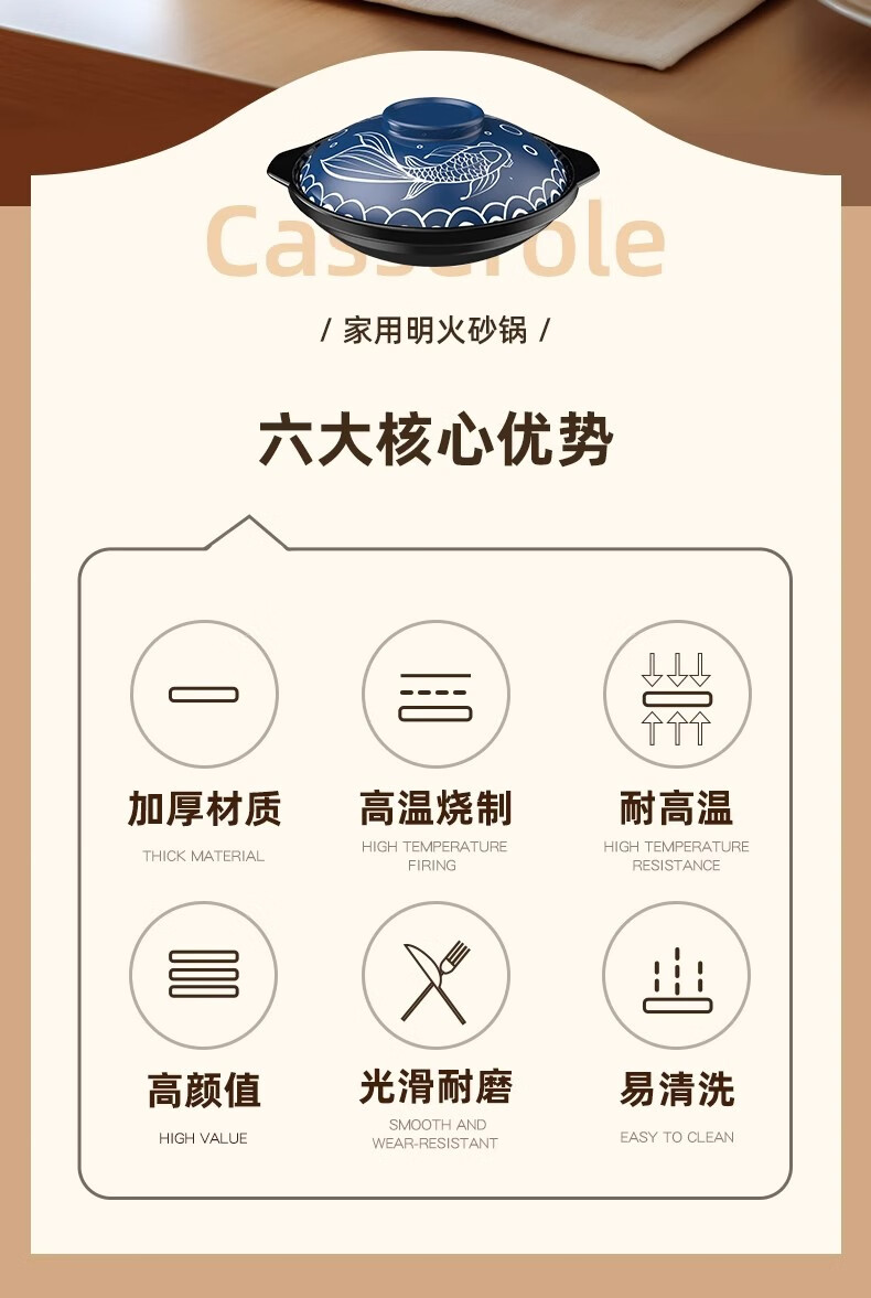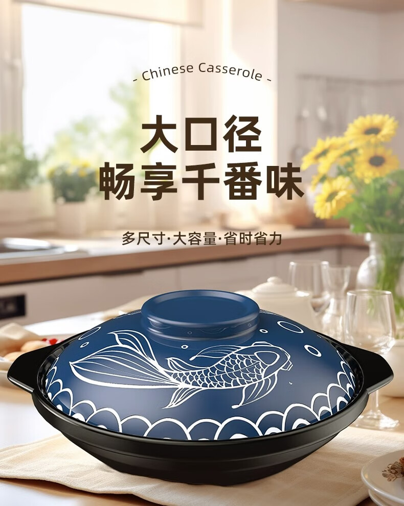 GNNDXX德国耐高温砂锅家用干烧不裂陶瓷浅锅煤气灶专用煲粥炖汤老式沙锅 年年有鱼深蓝盖浅锅 2.6L