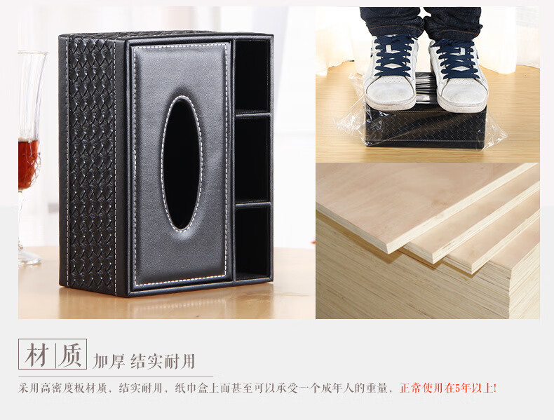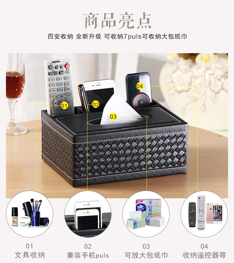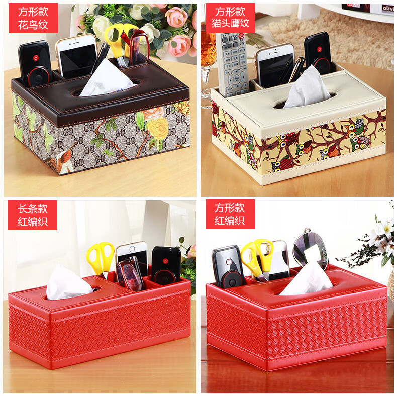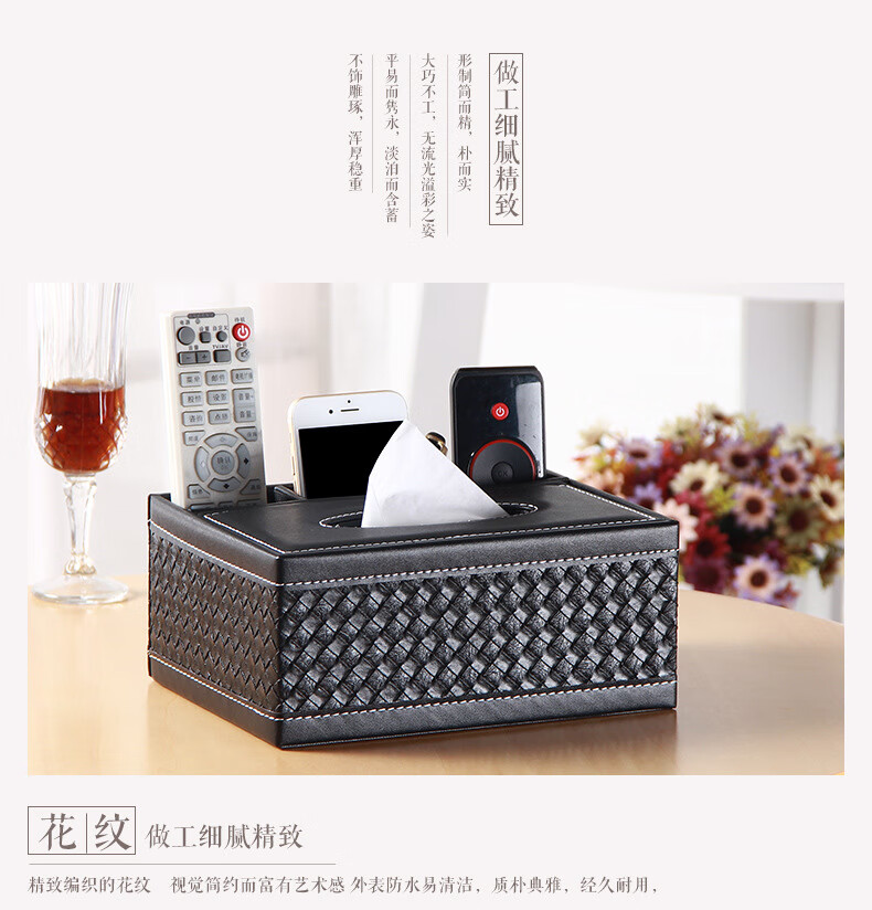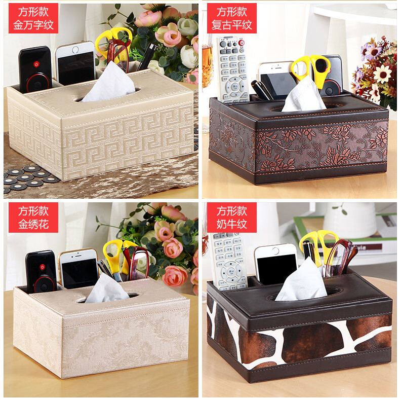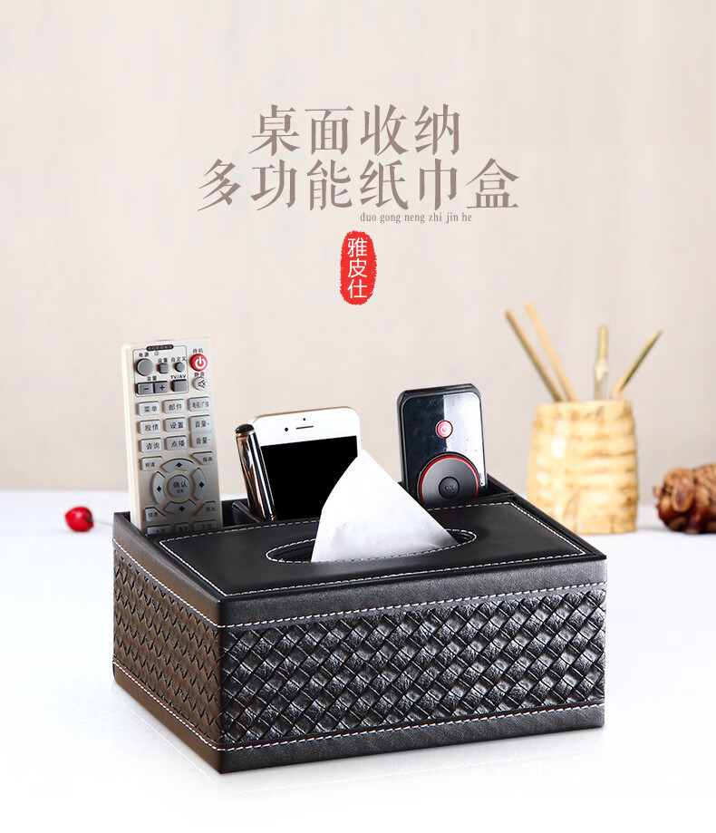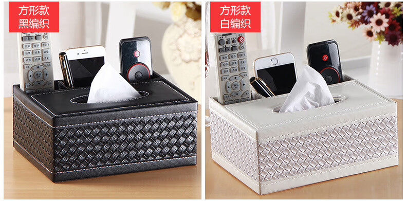 【直发】多功能收纳纸巾盒家用遥控器收纳盒创意纸抽盒客厅餐厅 方形白格纸巾盒 23.5*16.5*9.5cm
