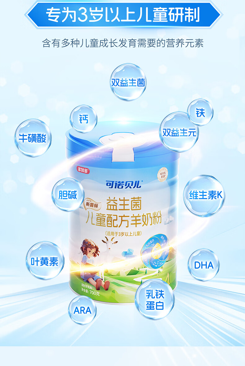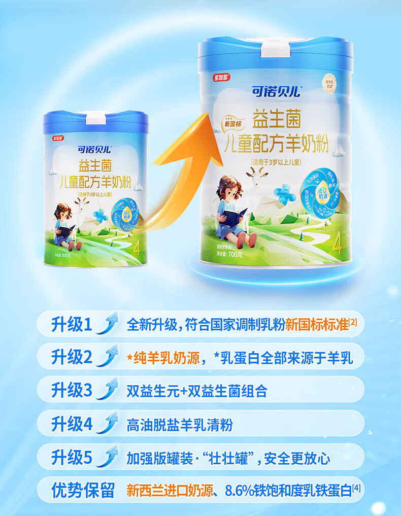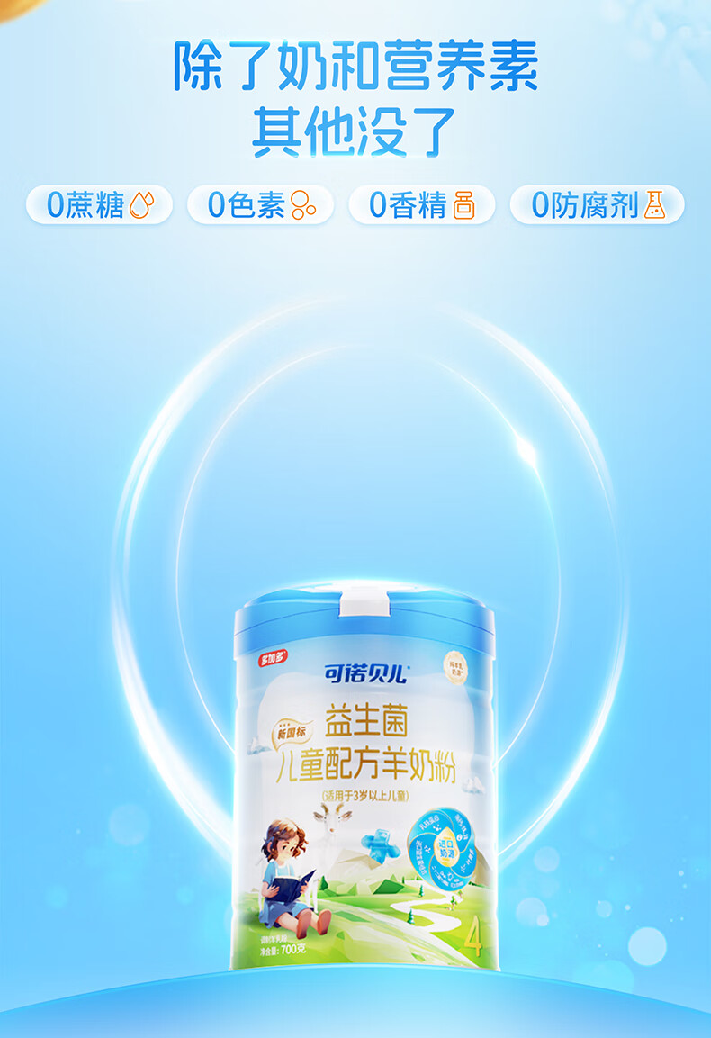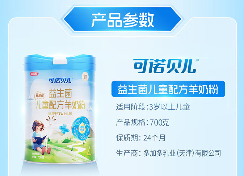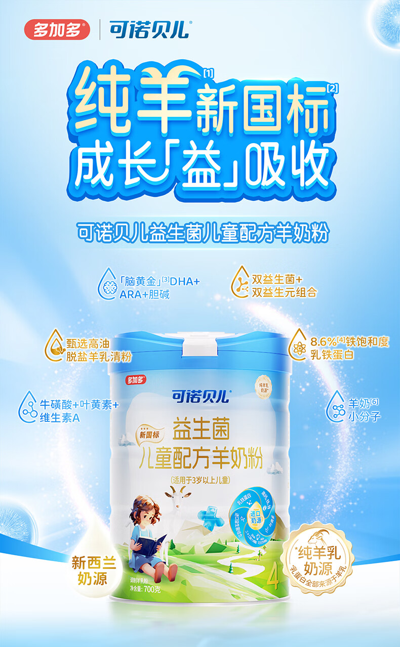 可诺贝儿多加多儿童4段羊奶粉3-6岁高钙好吸收儿童成长奶粉6-15岁益生菌 儿童 700g 6罐